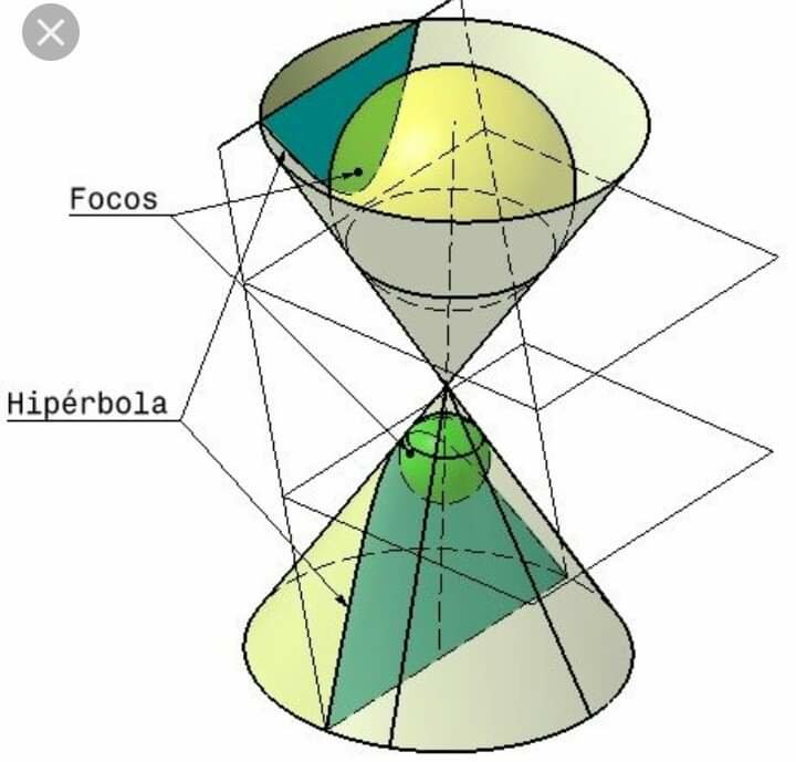 Hipérbola : Cuando el plano corta al cono en forma paralela a su directriz (plano perpendicular a la base que pasa por el vértice del cono)